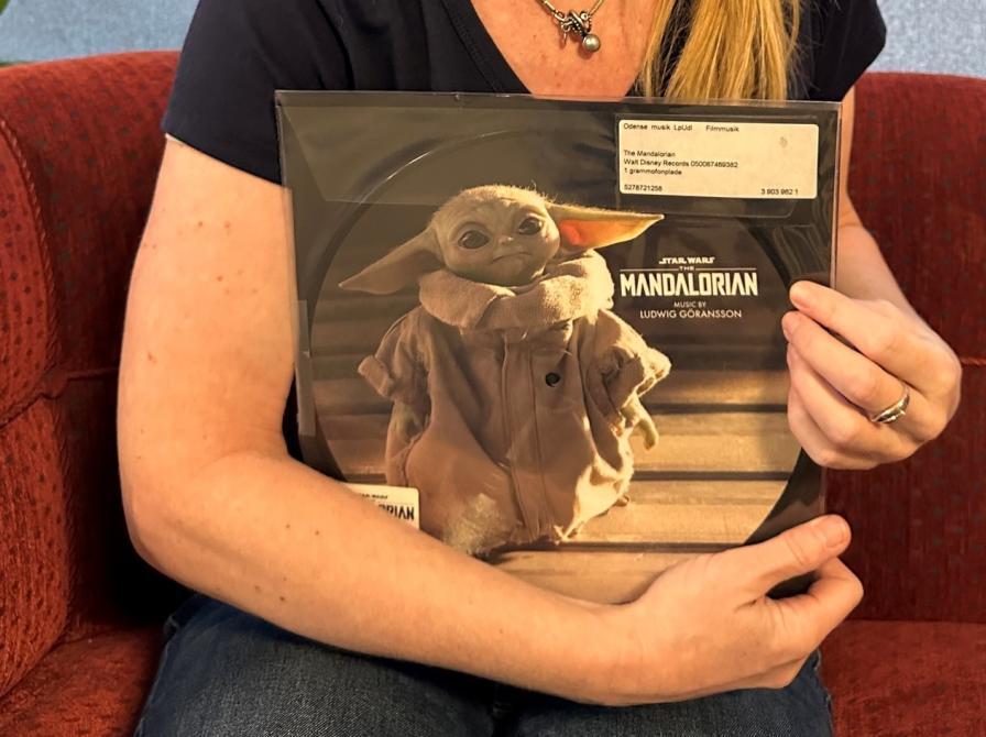 Så derfor vender jeg mig denne gang mod en anden genre, som har min lige så store kærlighed som den klassiske musik: Filmmusikken. Og her har jeg faktisk OGSÅ snydt lidt, fordi der ikke er tale om et decideret cover, men en printet vinylsingle i et klart plastikcover: Ludwig Göranssons hovedtema til tv-serien The Mandalorian med et billede af den usigeligt nuttekære, lille Grogu, a.k.a. Baby Yoda, på.